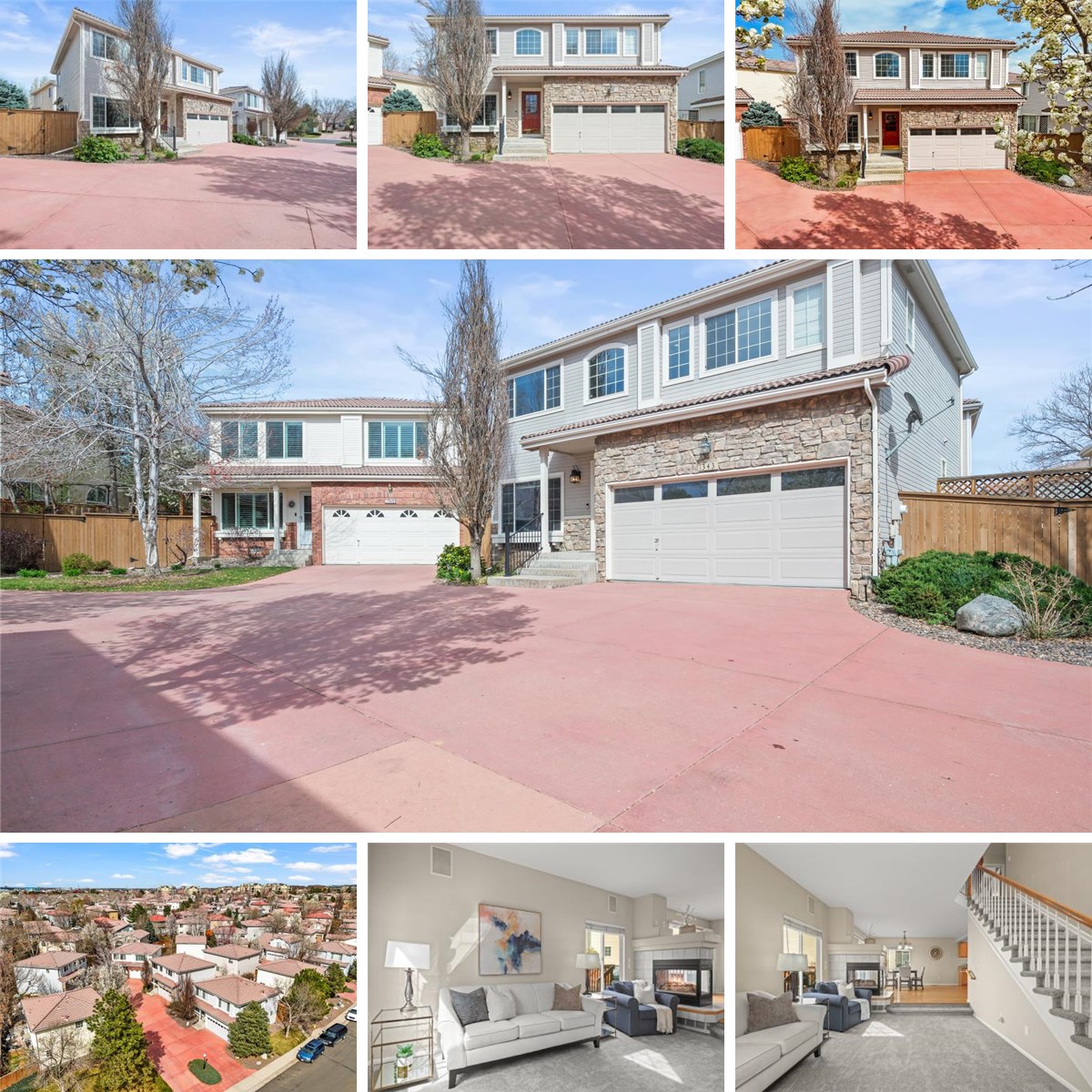 Low maintenance living on a cul-de-sac with lots of natural in Highlands Ranch! 3 bedrooms, 3 Bathrooms, Loft/Family room, private yard with new carpet! The main floor welcomes you with a living room, 2-sided fireplace, dining room, kitchen with stainless steel appliances, new oven, powder bathroom, laundry room. Upstairs is the primary suite with mountain views, large walk-in closet, ceiling fan, 4-piece bathroom with dual vanities, large garden tub, and new LVP flooring. There are 2 additional bedrooms, a full bathroom, and loft/family room. There is a large sliding glass door off the dining room that leads to the large deck, xeriscaped yard, and paver pathway. Enjoy care-free living in the winter, the HOA takes care of the snow on the driveways. Walk to Eldorado Elementary, close to Ranch View Middle School, and ThunderRidge High School. Close to Central Park, Town Center, UC Health, Children’s Hospital, shopping, dining, and amazing trails. Enjoy 4 Highlands Ranch Rec Centers featuring pools, fitness centers, classes, camps, tennis, pickle ball courts, and more! Don’t miss the chance to make this your new home!