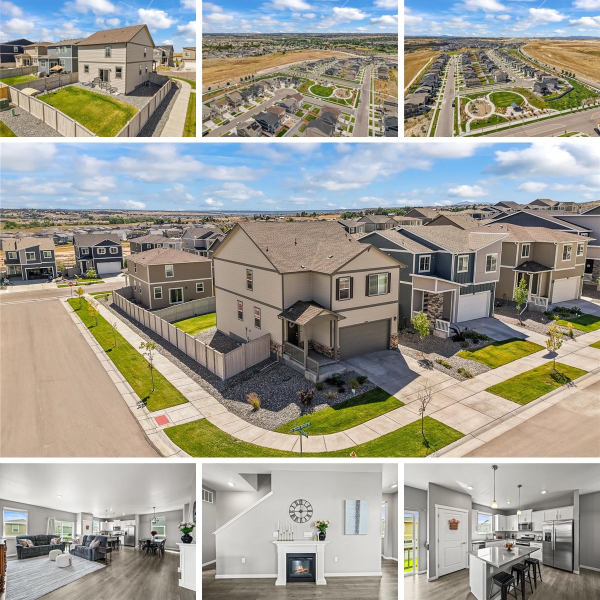 Amazing home with a finished basement in Looking Glass with 5 bedrooms, 4 bathrooms, 2 car garage. Located on a corner across the street from Lasso Field community park and down the street from Wrangler community park! Open floorpan with great room, kitchen, dining room, and powder bath on the main floor with laminate plank flooring. The kitchen has beautiful 42” white cabinets with crown molding, subway tile backsplash, large island, quartz counters, stainless steel appliances - refrigerator, gas stove, microwave, and dishwasher. Step outside to the fenced backyard with room for a playset and activities. Upstairs is a loft, primary bedroom suite, primary bathroom, walk-in closet, huge laundry room, 3 additional bedrooms and a full bathroom. The finished basement adds additional living space with a bedroom, bonus room, family room, and custom bathroom with dual vanity. Enjoy true Colorado living in this area with parks, trails, and 130 acres of preserved open space. Easy access to Downtown Denver, DTC, I-25, E-470. Enjoy shopping and amenities in Parker and Castle Rock.