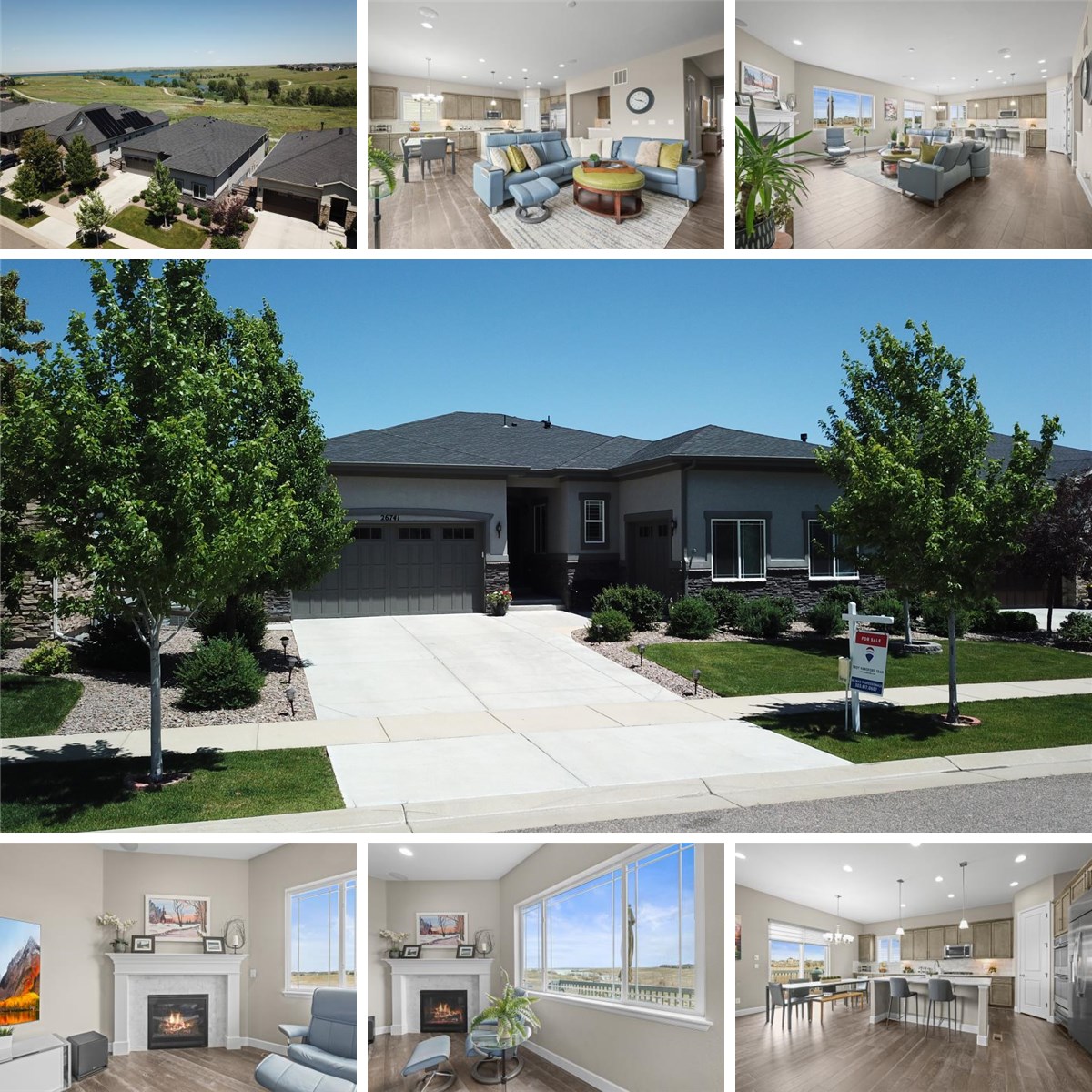 Discover the perfect blend of #LuxuryLiving, comfort, and convenience in this stunning upgraded home with a finished walkout basement and breathtaking mountain and reservoir views! Step into an inviting foyer that opens to a sun-drenched #OpenFloorPlan with soaring ceilings and stylish LVP floors. The cozy great room features a gas fireplace and built-in surround sound, flowing seamlessly into a #ChefKitchen with quartz countertops, sleek 42” gray cabinets, stainless steel appliances, a large island, walk-in pantry, and a sunny breakfast nook. Enjoy your morning coffee on the deck with unbeatable sunrise views over the Aurora Reservoir — this is true #ColoradoLiving! The main level includes a dedicated home office, a built-in tech center for work or homework, and a luxurious primary suite with spa-style bath and walk-in closet. Two more bedrooms, a full bath, and a laundry room with cabinets and utility sink add convenience. Downstairs, the finished walkout basement is a true showstopper — complete with a home theater, flex room (perfect for a gym, hobby space, or second office), private 4th bedroom, and 3/4 bath — ideal for guests or multi-generational living. Outside, enjoy a low-maintenance yard with direct access to scenic trails and open space, great for kids, pets, and peaceful walks. Additional features include a 50-gallon water heater, radon mitigation system, and whole-house humidifier. Located just minutes from top-rated schools, Southlands Mall, dining, grocery stores, and E-470 for easy commuting. Homes with views like this are rare—don’t miss out on this #MoveInReady gem in #AuroraCOHomes! Schedule your tour today!
